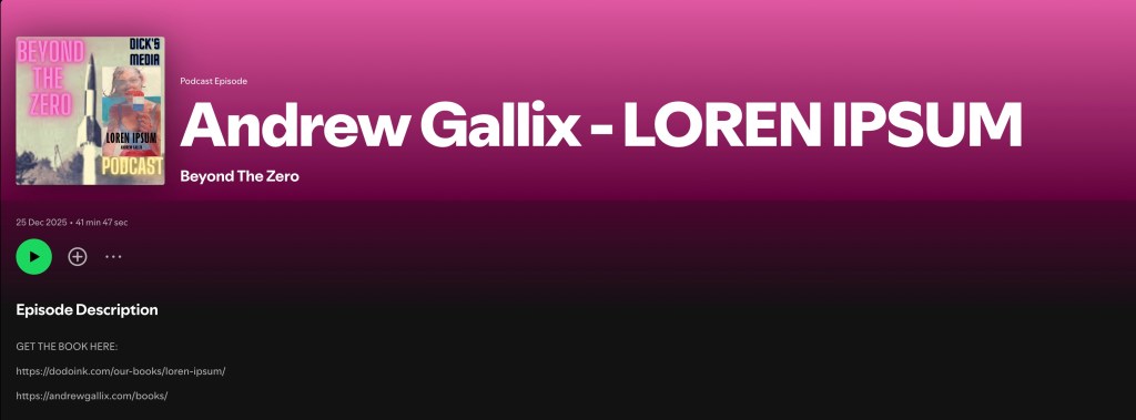 “I also didn’t want to major on Andrew Gallix’s Loren Ipsum, since my delight at actually being – in a suitably roundabout way – featured in the story renders me unable to comment on it with any objectivity. But I’d love you to get hold of a copy of that too.”