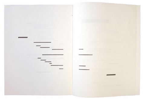 Mallarmé’s Un coup de dés jamais n’abolira le hasard, produced by Broodthaers, based on Mallarmé’s poem using the original lay-out design and replacing the text with blank rectangles, 1969.