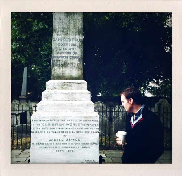 [Picture: Tom McCarthy and Daniel Defoe, Bunhill Fields, London, August 2010. By Andrew Gallix.]