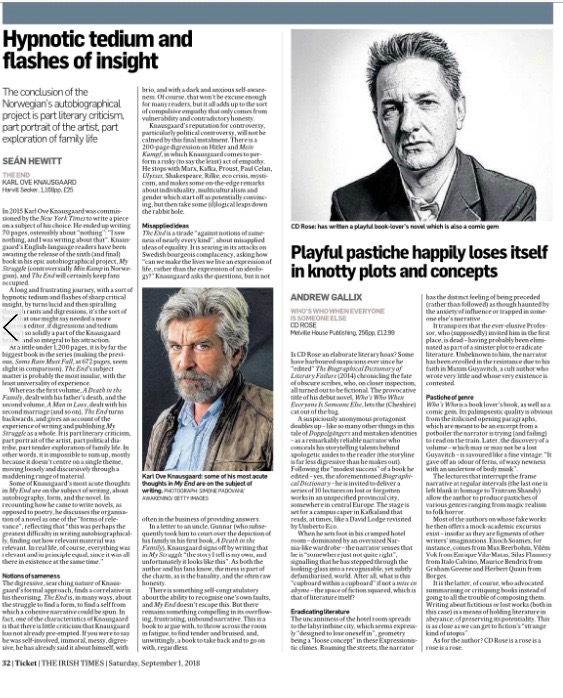 Who’s Who When Everyone is Someone Else, which appeared in 2018, revolves around a British academic who, having written a book entitled (what are the odds?) The Biographical Dictionary of Literary Failure — is invited to deliver a series of ten lectures on lost or forgotten works in a provincial university located somewhere in central Europe. This academic is an authority on Maxim Guyavitch, a cult author so obscure that his very existence is contested.