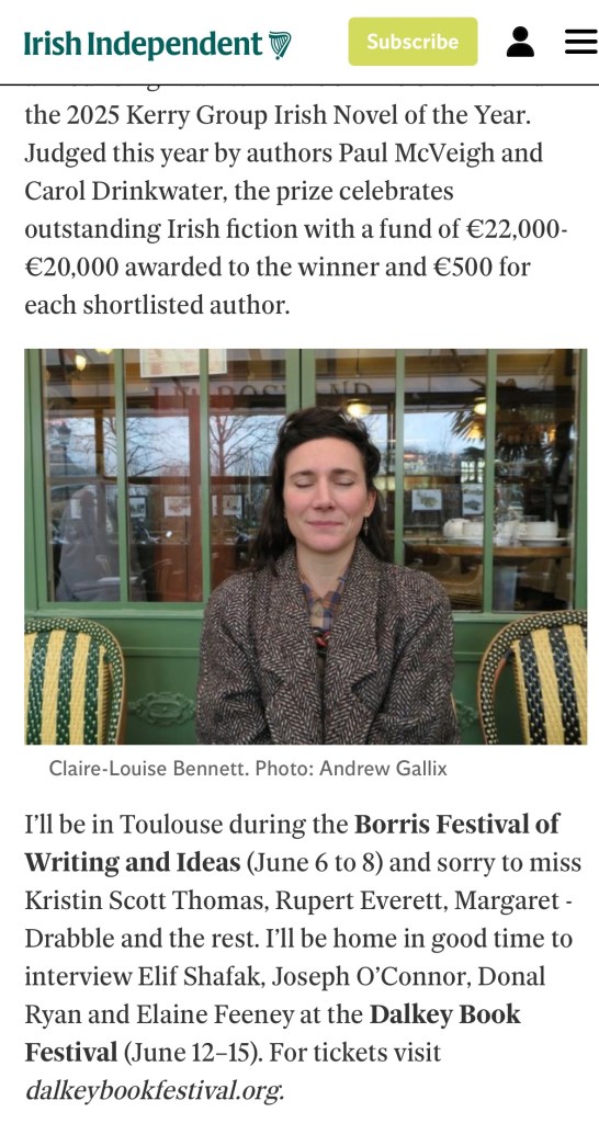 My picture of Claire-Louise Bennett, taken at Le Rostand, Paris, in 2018, appeared in the Irish Independent on 29 May 2025.