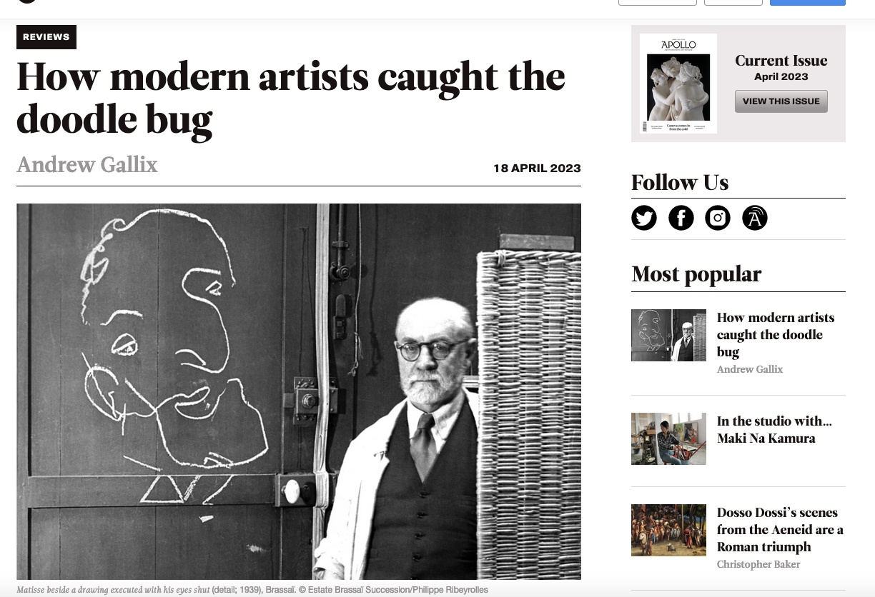 “How Modern Artists Caught the Doodle Bug.” Apollo, 18 April 2023.