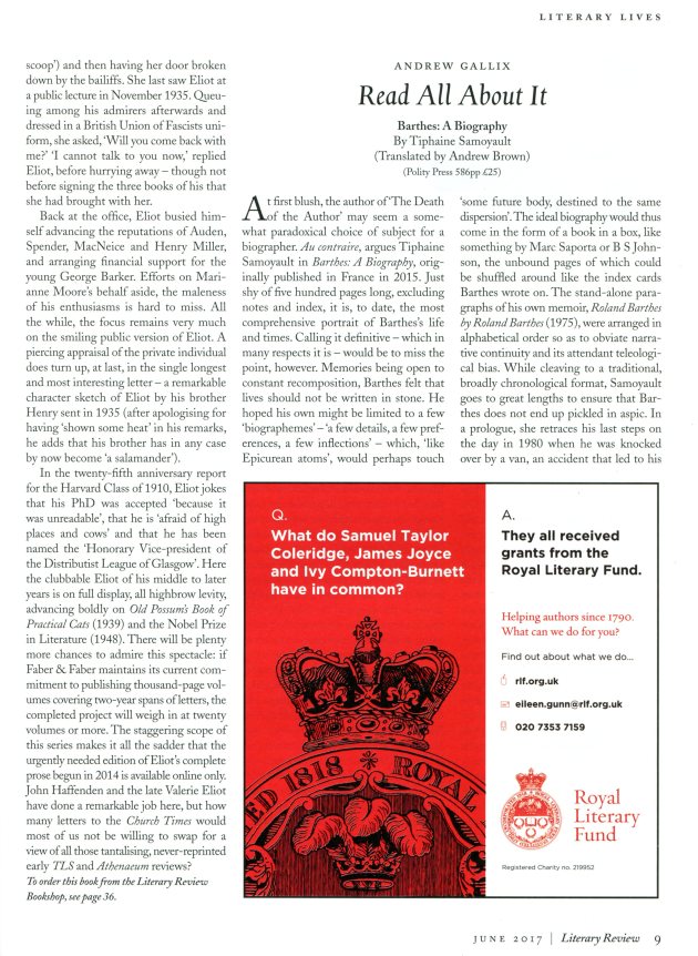 This appeared in Literary Review November 2016: 30-31.