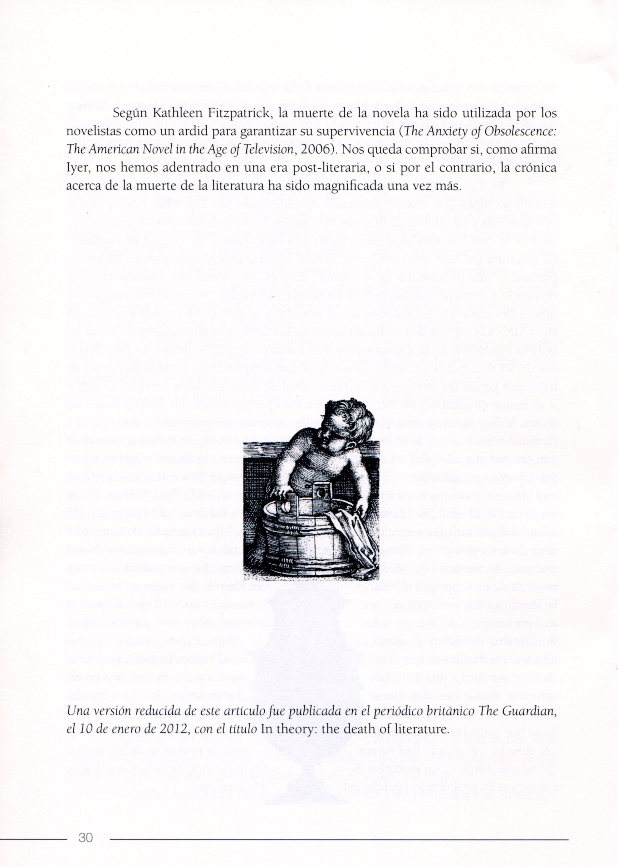 Una versión reducida de este artículo fue publicada en el periódico británico The Guardian, el 10 de enero de 2012, con el título “In Theory: the Death of Literature”.