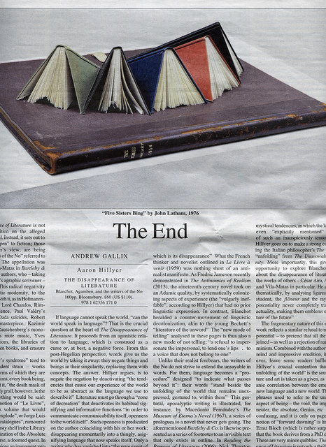 This review of Aaron Hillyer’s The Disappearance of Literature: Blanchot, Agamben, and the Writers of the No appeared in the Christmas double issue of the Times Literary Supplement 19-26 December 2014: 36.