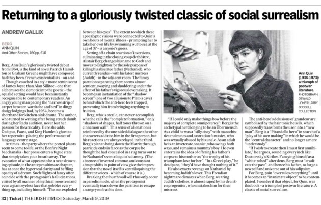 Here is my review of The Netanyahus by Joshua Cohen. The Irish Times, 5 June 2021, p. 17.