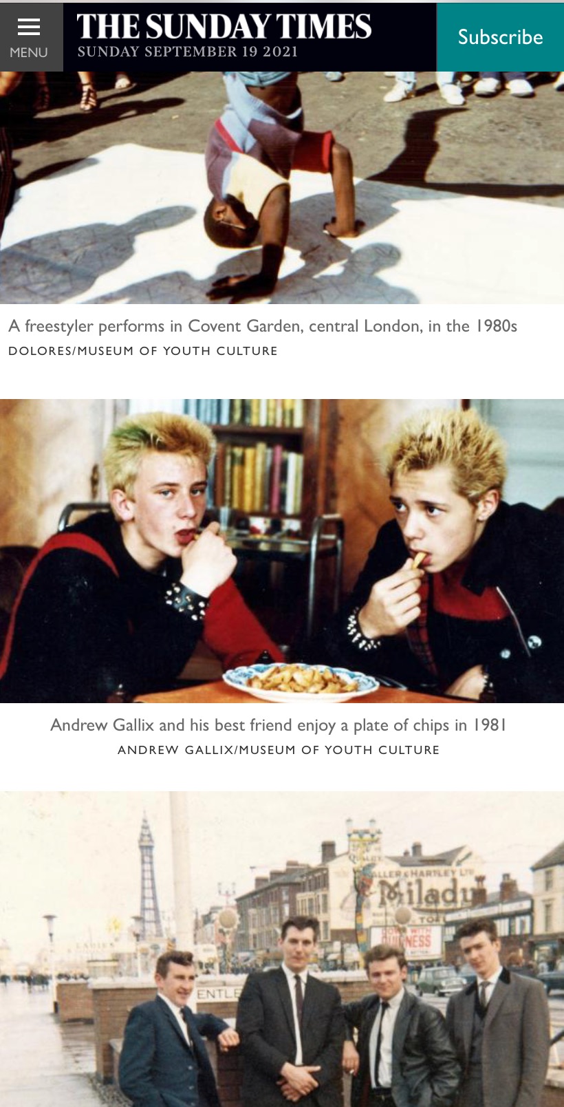 Me (left) and friend (back in 1981) on The Times website, as part of a series of pictures from the Museum of Youth Culture’s Grown Up in Britain coffee table book. It was posted on 16 September 2021.