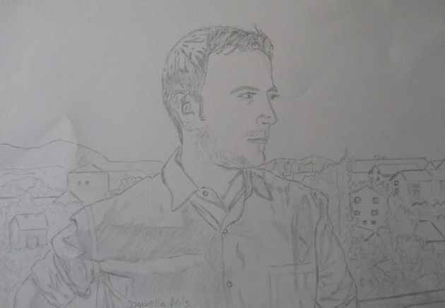 The multi-talented Sam Mills has done my portrait (as part of a series of writers’ portraits). The beauty of it is that she’s actually managed to make me look good! This is the second draft. Sam said, “I found it easier to draw your eyes when I realised you have similar eyes to Lucian Freud, who I’ve also been sketching (his ghost kindly sat for me…)”.